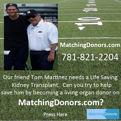 "Tom Brady helps his life-long mentor in search for a new kidney on MatchingDonors.com".